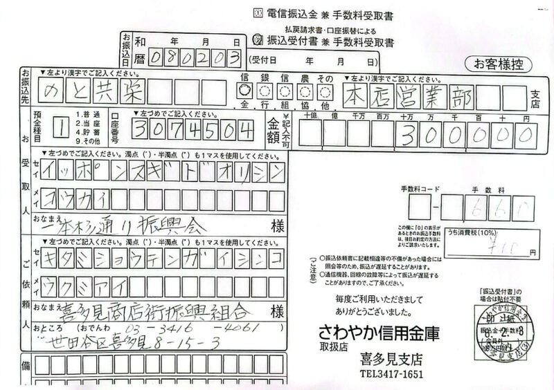 能登地方義援金 送金のお知らせ 2026年2月6日 最終更新日時 : 2026年2月6日 usr_kitami 商店街の各種イベントにおいてお預かりいたしました義援金を、石川県七尾市にある商店会、一本杉通り振興会に送金致しました ここに謹んでご報告申し上げます。 誠にありがとうございました。